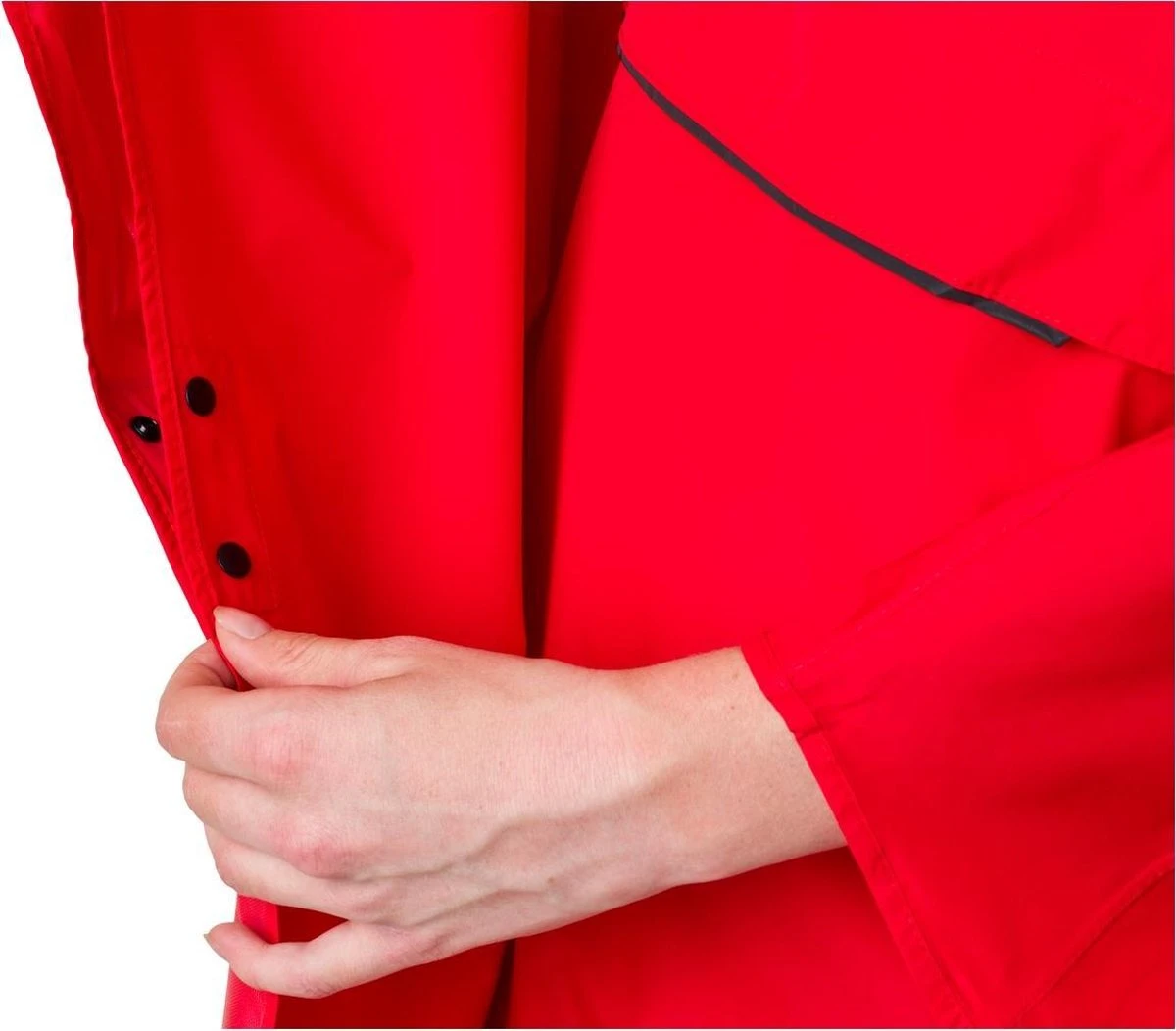 - De poncho is voorzien van mouwhanden. Hierdoor kun je je handen tijdens de rit lekker droog onder je poncho houden. Bovendien waait de poncho niet op.