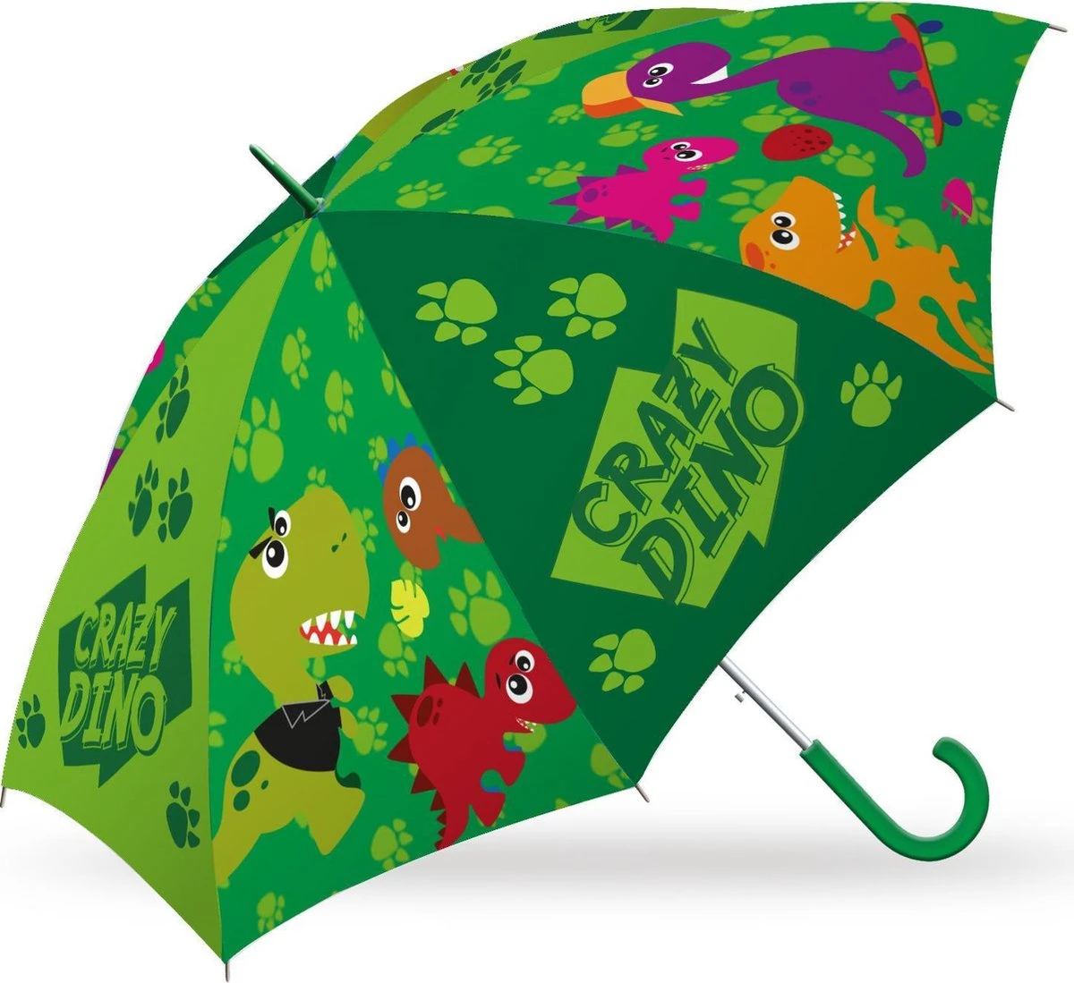 Laat de regen je er niet van weerhouden om op pad te gaan! Met deze leuke Crazy Dino paraplu ga jij vrolijk door de regen. Het gebogen handvat is niet alleen fijn om vast te houden, maar zorgt er ook voor dat je de paraplu gemakkelijk kunt ophangen.