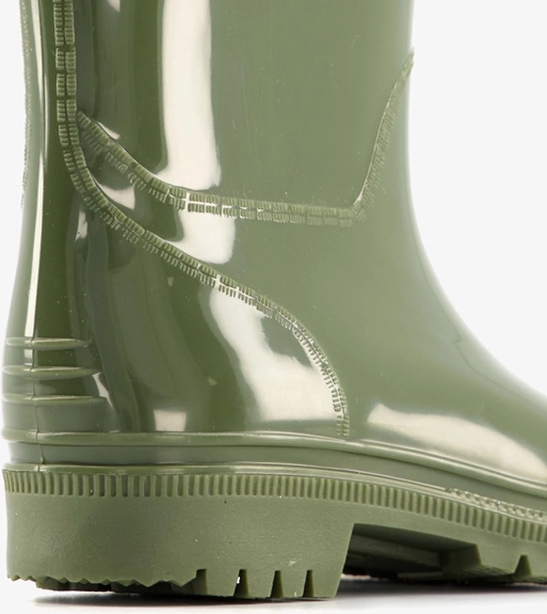 Groene kuit regenlaarzen voor kinderen. Gemaakt van synthetisch PVC, wat de laarzen flexibel maakt. Voorzien van een stevige profielzool die zorgt voor veel grip, en optimaal comfort biedt. Ontworpen voor een all-round bescherming in verschillende (weers)omstandigheden en condities, van wandelen in het bos tot stampen in de plassen of door het zand. Groot assortiment voor het hele gezin Elke dag volgen wij de nieuwste trends op de voet