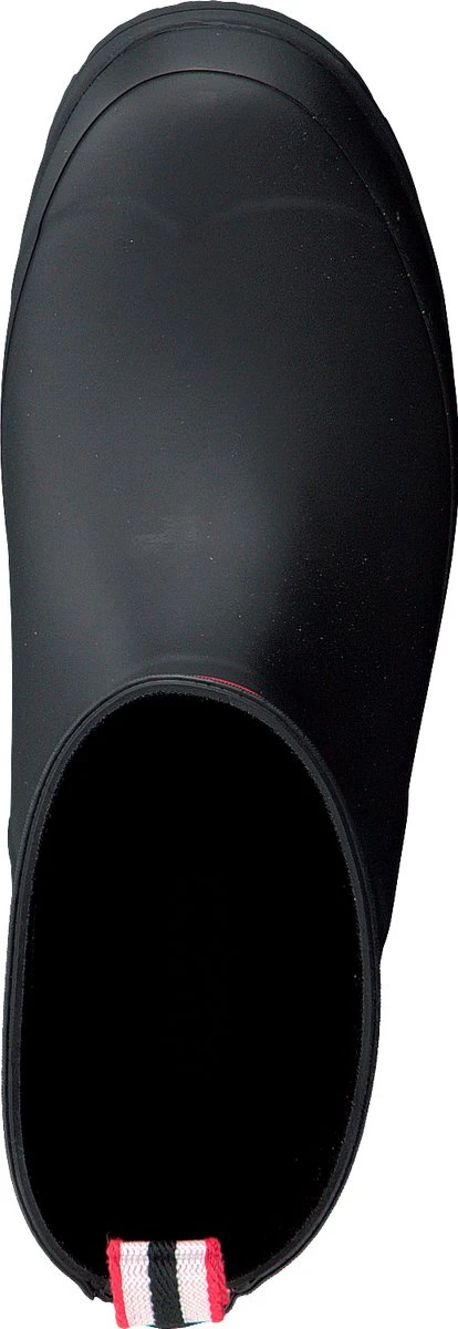 Specificaties: Pasvorm: Halfhoog model met lipje om eenvoudig aan te trekken. 2cm hoge sleehak. Bovenwerk: Waterdicht rubber Materiaal: Rubber, voering van textielKleur: Zwart – wit – rood