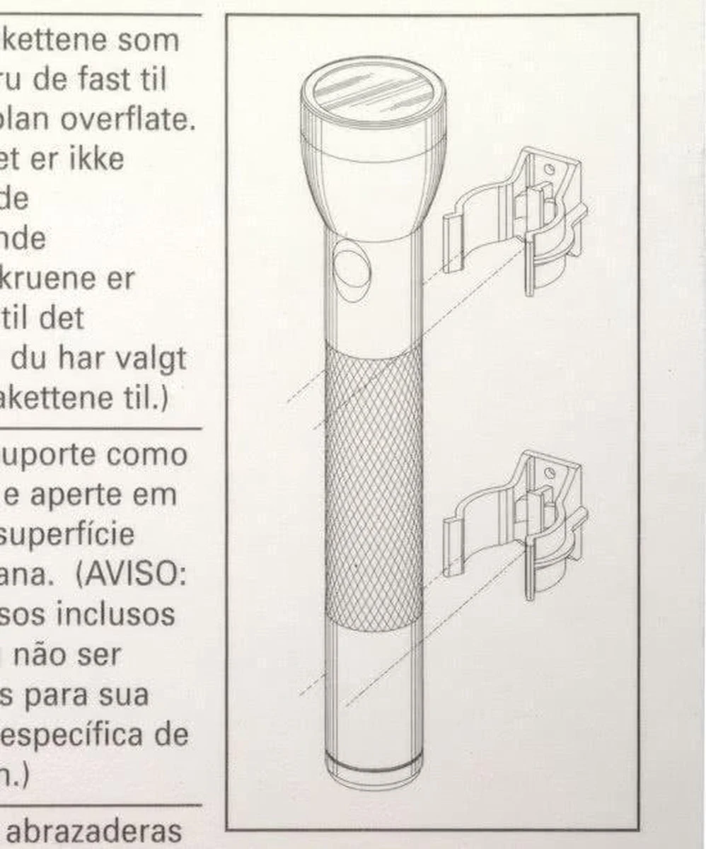 Altijd je MagLite USA D-cell bij de hand met deze set van 2 wandklemmen. Vervaardigd van kunststof, inclusief bevestigingsschroeven. Op blister. MagLite is een internationaal bekend topmerk van kwalitatief hoogwaardige zak- en staaflampen. Wereldwijd gebruikt door professionals van het leger en de politie. De robuuste zaklampen zijn vervaardigd uit praktisch onverwoestbaar geanodiseerd vliegtuigaluminium met rubberen O-ringen. Shockproof en spatwatervast. De lampen hebben een zeer hoge lichtopbrengst en een gepatenteerde draaikop voor het focussen van de lichtbundel. Op de MagLite producten geldt een beperkte levenslange garantie van 10 jaar. Elke MagLite bevat een reservelampje.