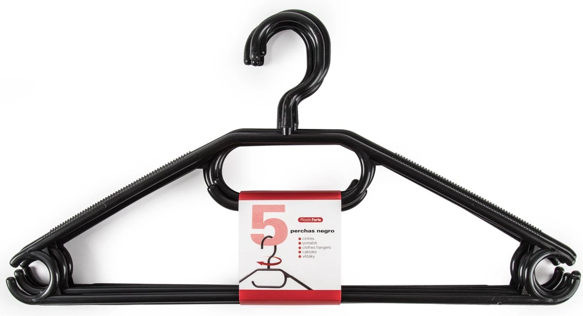 - 1x Forte Plastics Kledinghangers – 5x stuks – kunststof – zwart – B40 cm