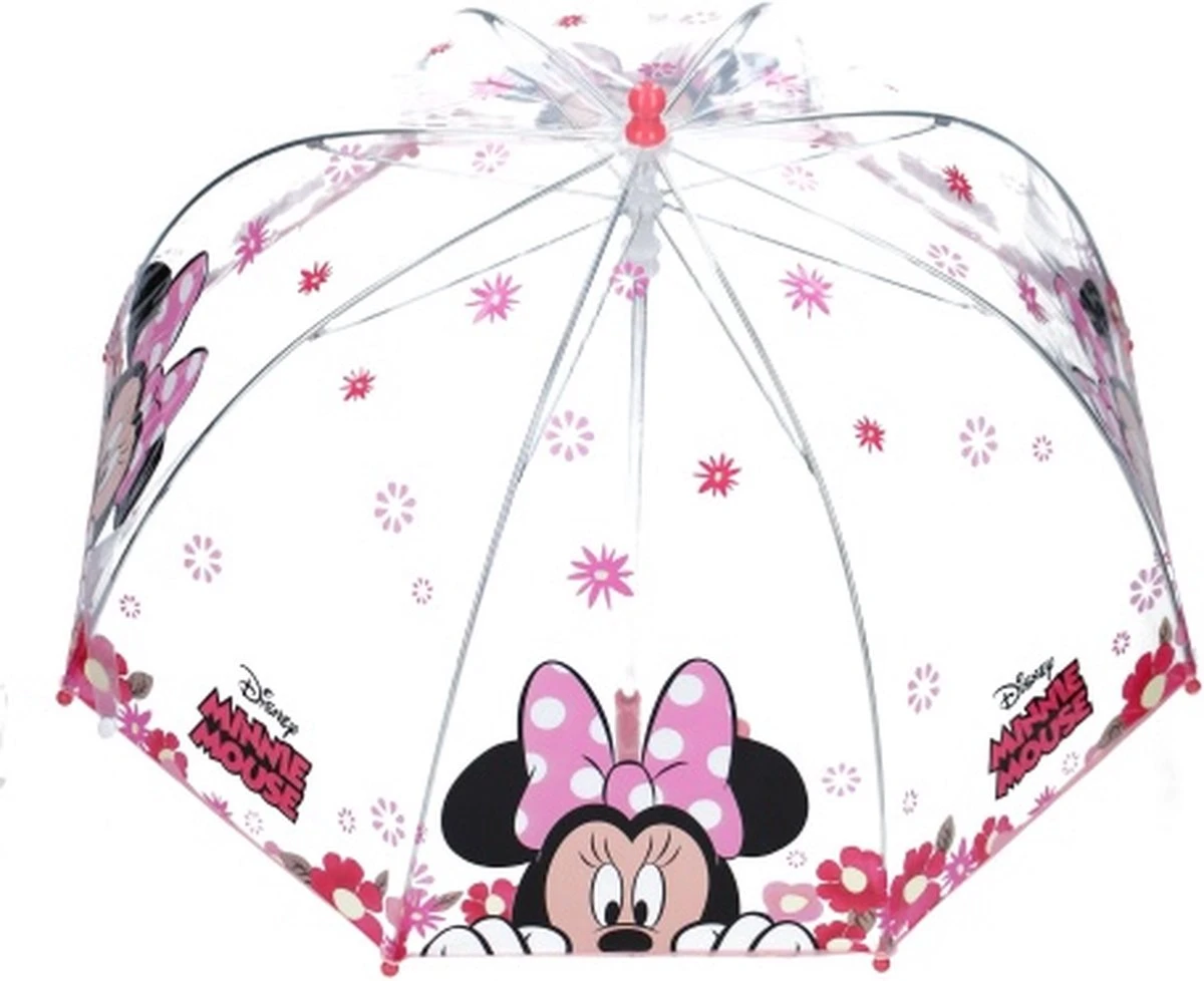 Het regent, het regent….. maar met deze Disney Minnie Mouse paraplu blijf je lekker droog! Deze transparante paraplu heeft 8 metalen baleinen. Door het transparante scherm zie je altijd waar je loopt. Kom maar op met die regen!