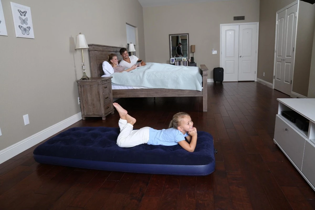 Luchtbed voor een persoon met een afmeting van 185 x 76 x 27. Altijd handig om bij de hand te hebben als iemand blijft overnachten.