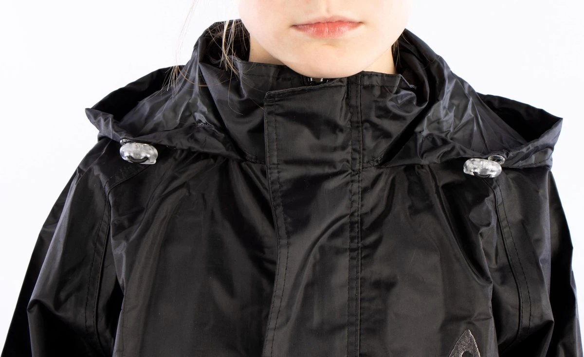 Dit Ralka regenpak voor kinderen is ideaal voor het fietsen in slecht weer of tijdens een andere buitenactiviteit. Het beschermt tegen regen en wind, zelfs de naden zijn volledig getaped dus ook daar komt geen water naar binnen. Het pak heeft een fijne regenjas met raglan mouwen en reflecterende details. Zo ben je niet alleen beschermd tegen water en wind, maar val je ook nog eens op in het donker. Het regenjack heeft een capuchon in de kraag, een overslag met extra ventilatie op de rug en verstelbare klittenbandsluitingen bij de mouw. Zo sluit het jasje goed aan en komt er geen regenwater naar binnen. Het jack heeft twee steekzakken en een waterdichte rits.