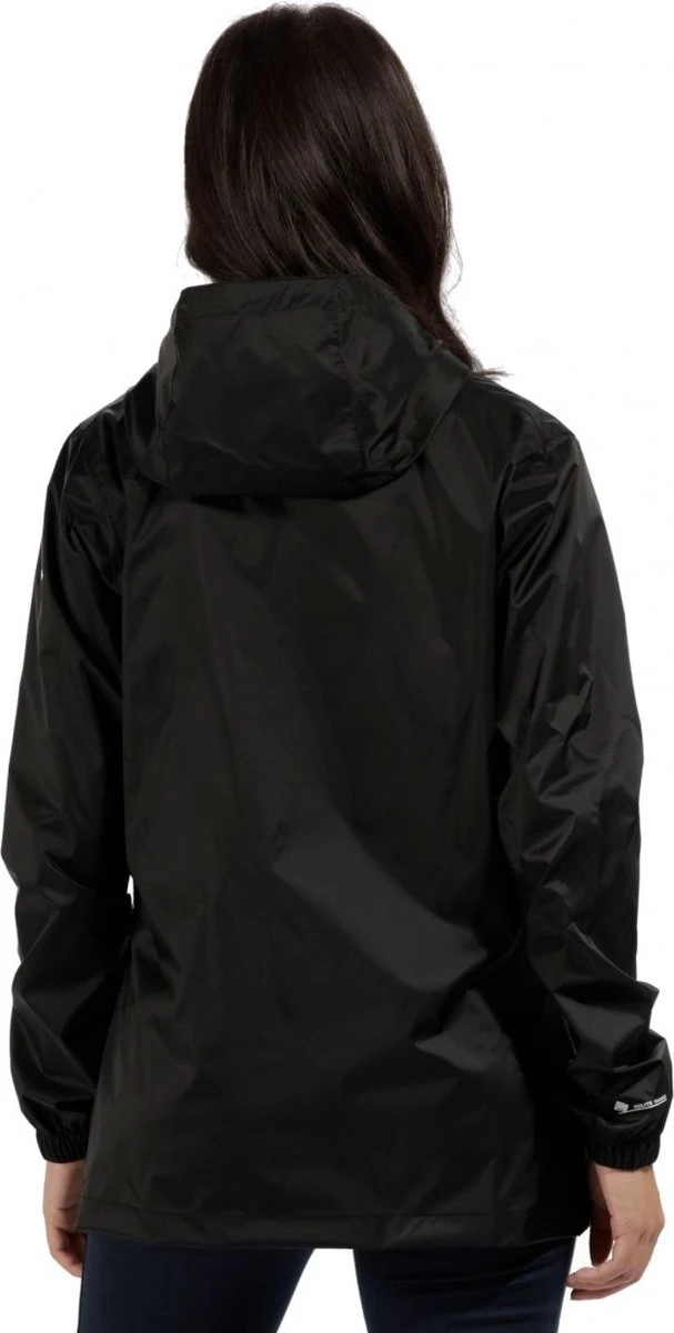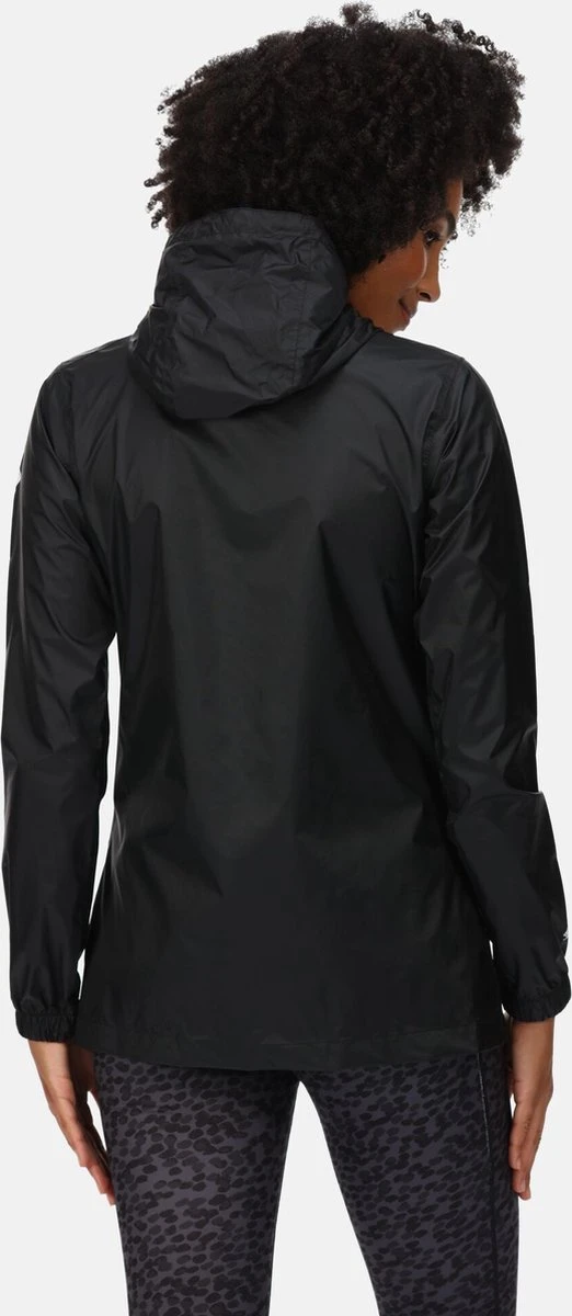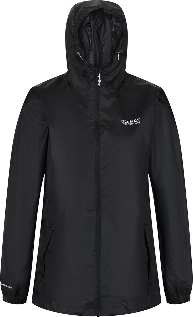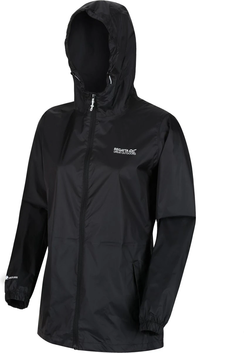 De Pack-It Jacket van Regatta voor dames is gemaakt van waterbestendig en ademend ISOLITE 5000-polyamide en heeft een verstelbare capuchon, een dunne drukknoopsluiting, twee handige zakken en een kleine draagzak. Met Regatta-opdruk op de borst.