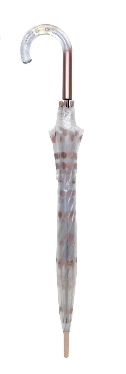 Het regent, het regent….. maar met de Pois van Smati blijf je lekker droog! Deze transparante paraplu met 8 baleinen is lekker stevig en door het transparante scherm zie je altijd waar je loopt. De zilveren of gouden stippen en handgreep geven hem net dat beetje meer. Dus kom maar op met die regen!
