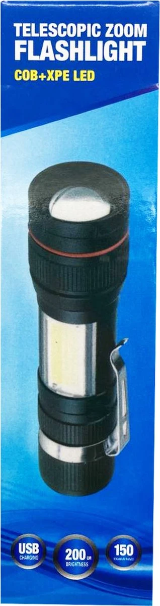 De zaklamp beschikt over een aantal functies om de bruikbaarheid te maximaliseren. Zo kunt u met de zaklamp in- en uitzoomen door de kop van de zaklamp te verschuiven. Hierdoor kunt u kiezen tussen een geconcentreerde lichtstraal voor dichtbij of een bredere lichtstraal voor ver weg. Verder kunt u de zaklamp op 4 verschillende modussen zetten: Hoge intensiteit, lage intensiteit, strobe en SOS. Een modus voor elk geval!